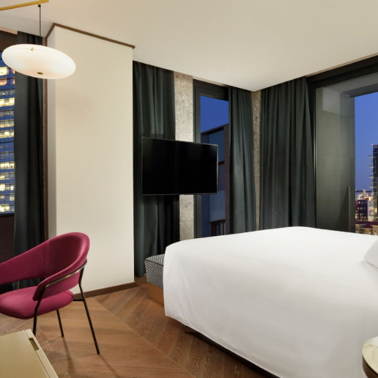 Milano Verticale | UNA Esperienze is a 4* hotel with an international character for business and leisure, whose taste is rooted in modern Milanese tradition while combining an eclectic mix of contemporary excellence in Italian fashion, design, creativity, food and wine. A concept of elevated hospitality that creates and personalises the best experiences of the destination through the exceptional location, the use of design and quality materials, prestigious catering, Penthouse suites, wellness area and unique meeting spaces. Milano Verticale | UNA Esperienze is an urban hotel which is also a gourmet destination, an upmarket bar, a place for business, and an innovative hub for successful events. In line with the urban context, lively and in full swing, the hotel represents the essence of the evolution of the Porta Nuova - Garibaldi - Corso Como area of Milan.