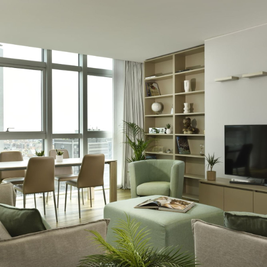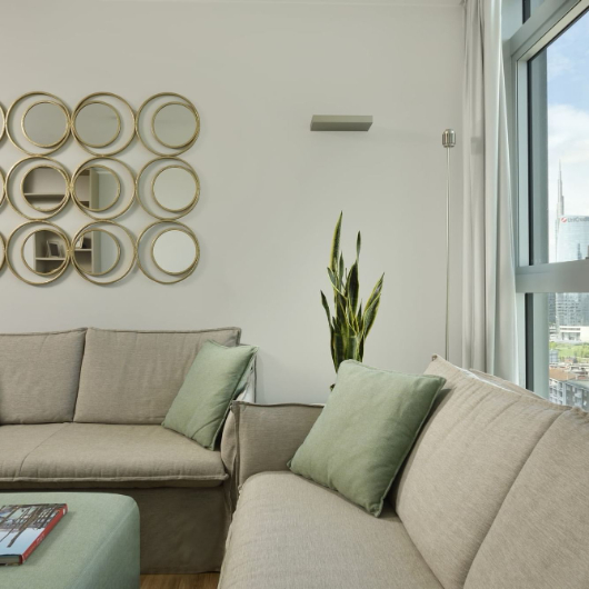 The 63 two-, three-, and four-room apartments, all luxuriously furnished and served, located on the top 13 floors from the 13th to the 25th, are all very bright and offer incredible 360° views over the city of Milan. They differ in terms of category and size, but not in prestige and elegance. They feature state-of-the-art services and offer splendid views to their guests, whether they face the city or the enchanting panorama of the Alps. Their strategic position, with plenty of public transport and well connected with the city centre, just a short walk from the Central Station and Porta Nuova - Milan's new business quarter - makes them ideal for both short breaks and longer stays. You'll appreciate a stay at Torre GalFa Milano Luxury Apartments | UNA Esperienze even more when you learn that the 103-metre tall building is one of Milan's historic skyscrapers and opened in 1959 six months before the "Pirellone".