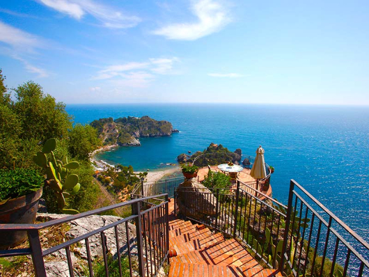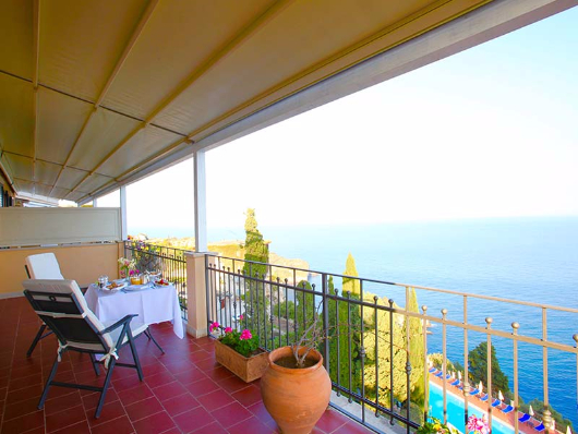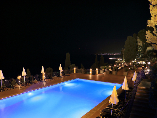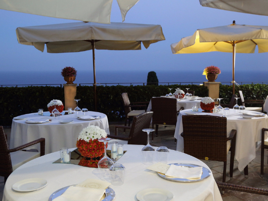 Grand Hotel San Pietro is a panoramic terrace on the Ionian Sea, so near that visitors can hear “u scrusciu du mari” and the waves crashing on the quiet coastline of Isola Bella. On the horizon, Etna. It is one of the glimpses that welcome the Hotel’s guests, immersed in the perfumes and colours of the lush Sicilian vegetation, just a few steps from the centre of Taormina.All around is a lush Mediterranean garden. Opposite is the sparkling blue Sicilian sea. To the right, majestic Etna and at its feet, the stretch of cost that is home to Giardini-Naxos. To the left, the pearl of the Mediterranean called Isola Bella, and on days when the sky is perfectly clear, you can see the outline of Calabria.The rooms are noted for their elegant style. Il Giadino degli ulivi is the perfect setting for enjoying lavish dinners and lunches amidst the beauty of the environment, the wonderful poetry of the view and the delicious tastes served up with the gourmet cousine. The restaurant at the Grand hotel San Pietro make you feel like you are at the centre of a courtship of eyes and palate.